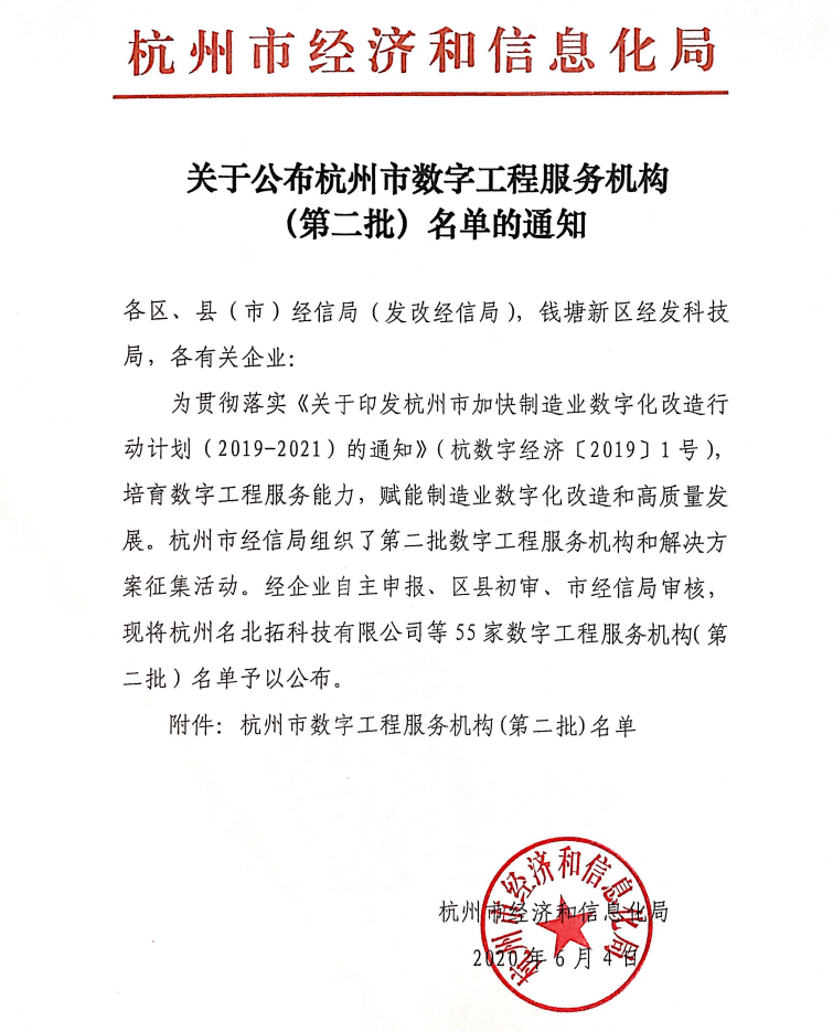 為了貫徹落實《關(guān)于印發(fā)杭州市加快制造業(yè)數(shù)字化改造行動計劃(2019-2021)的通知》(杭數(shù)經(jīng)濟【2019】1號),培育數(shù)字工程服務(wù)能力,賦能制造業(yè)數(shù)字化改造和高質(zhì)量發(fā)展。杭州市經(jīng)信局組織了數(shù)字工程服務(wù)機構(gòu)和解決方案征集活動。經(jīng)區(qū)縣初審、市經(jīng)信局審核,杭州利珀科技有限公司等55家企事業(yè)單位入選“杭州市數(shù)字工程服務(wù)機構(gòu)(第二批)”名單。