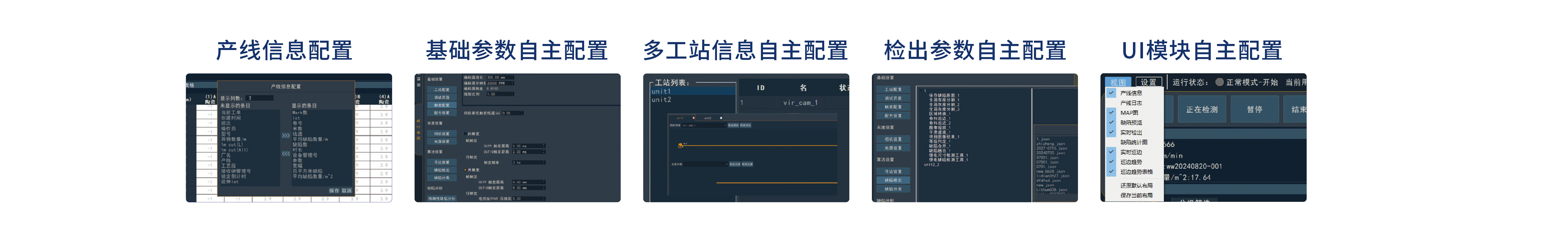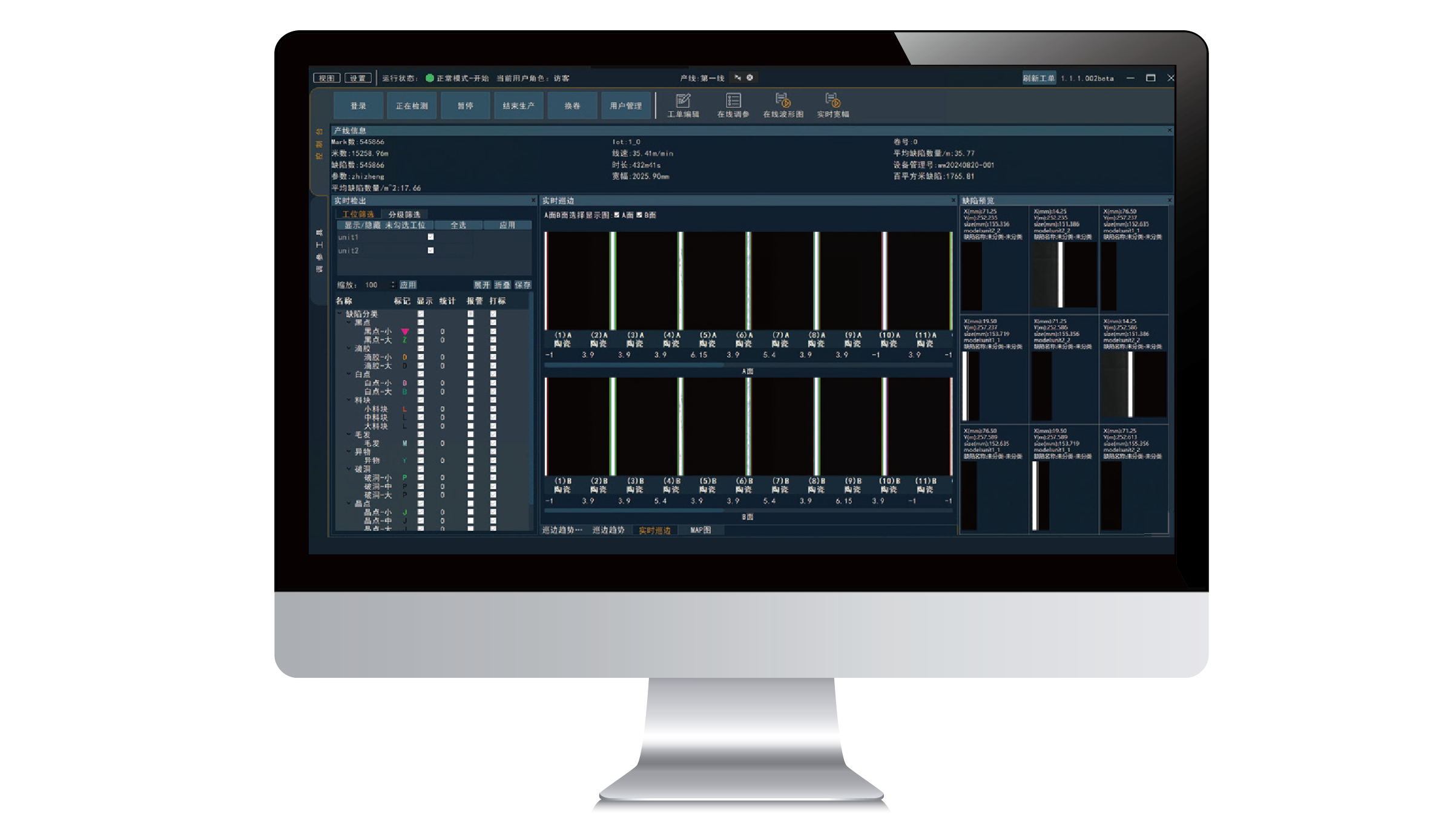 基于利珀多年平面材料檢測經(jīng)驗(yàn),推出通用卷材軟件飛瀑(FilmPort)。飛瀑應(yīng)用于平面材料連續(xù)化生產(chǎn)缺陷檢測,滿足流延、涂布、復(fù)合、分切等多種設(shè)備場景,為多工位、多相機(jī)協(xié)同作業(yè)的連續(xù)化生產(chǎn)現(xiàn)場帶來便捷迅速的視覺檢測體驗(yàn)。用戶可以自行配置產(chǎn)線信息、工位信息、相機(jī)數(shù)量、UI 模塊等,從而實(shí)現(xiàn)理想的界面展示效果。