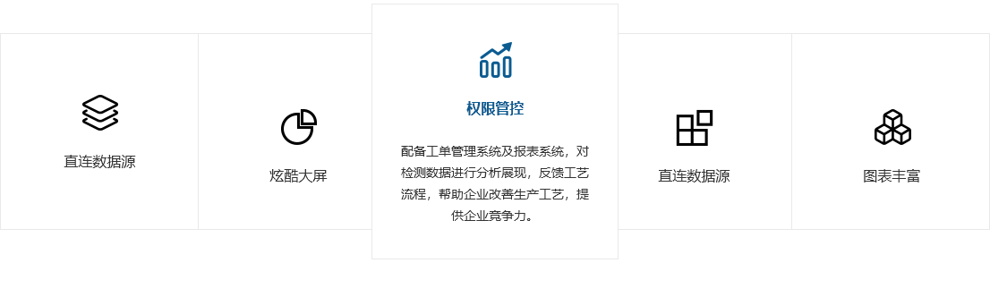 報表分析,反饋工藝流程:配備工單管理系統(tǒng)及報表系統(tǒng),對檢測數(shù)據(jù)進行分析展現(xiàn),反饋工藝流程,幫助企業(yè)改善生產(chǎn)工藝,提供企業(yè)競爭力。