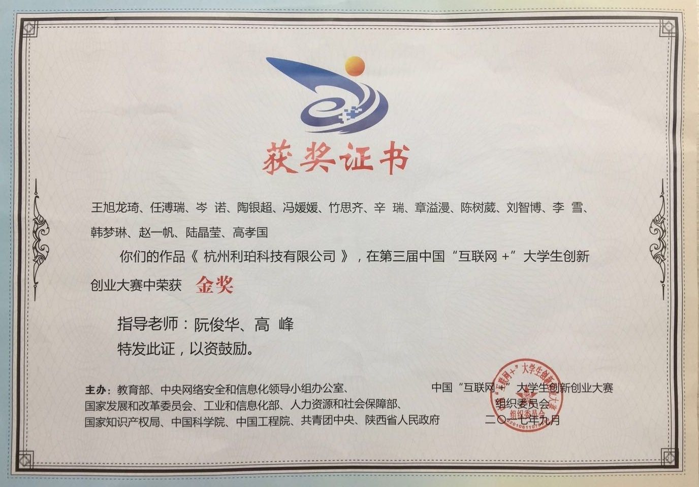 中國“互聯(lián)網(wǎng)+”大學(xué)生創(chuàng)新創(chuàng)業(yè)大賽金獎(jiǎng)